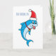 This cute happy dolphin is wearing a funny Santa hat. Drawn in fun cartoon style.
