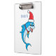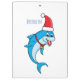 This cute happy dolphin is wearing a funny Santa hat. Drawn in fun cartoon style.