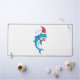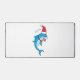 This cute happy dolphin is wearing a funny Santa hat. Drawn in fun cartoon style.