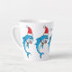 This cute happy dolphin is wearing a funny Santa hat. Drawn in fun cartoon style.