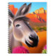 Cute Donkey in red cliffs of the desert with flowering cactus