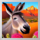 Cute Donkey in red cliffs of the desert with flowering cactus