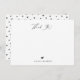 Cute slate grey doodle heart pattern, personalised note card. Card features black calligraphy script "Thank You" at top, single heart accent and template text line for your name at bottom.