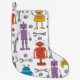 Cute doodle robots. Seamless pattern. Cartoon char Small Christmas Stocking