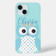Cute Dotty Blue Owl Art Personalised Case-Mate iPhone Case