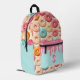 Cute printed backpack in pink, duck blue and cream, featuring pink dripping icing and colourful watercolor doughnut pattern. Perfect gift for a sweet girl :) Great for summer, or as a school bag and more. Easily personalise the text or leave it blank. - Kate Eden Art