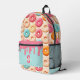 Cute Doughnut Pattern Dripping Sweet Pink Monogram Printed Backpack