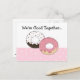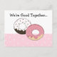 Two frosted doughnuts with sprinkles, a soft pink border with little white dots. A sweet message that says 'we're good together'