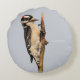 Cute Downy Woodpecker on Fruit Tree Round Cushion