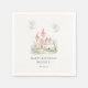 Cute dragon castle theme, birthday party paper napkins. Watercolor mediaeval castle and dragons.