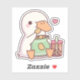 A cute seated duck is munching on a bag of potato chips with a cup of bubble tea with lots of boba on the side! Kawaii doodle for duck lovers!