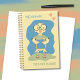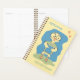 An adorable school planner for kids featuring a whimsical yellow duck carrying a blue book on the front and a yellow and green stripe pattern on the back . Personalise it with the child's name and the academic year . Pick a size .