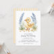 Celebrate your little one's special day with this adorable watercolor duckling invitation. Featuring a charming duckling surrounded by delicate blue lavender and floral accents, this design sets a whimsical tone for a first birthday party. The convenience of a QR code on the back allows guests to easily RSVP by scanning it with their mobile device, streamlining your event planning process. The soft color palette and hand-painted feel create a memorable and sweet announcement for your baby's milestone celebration.
