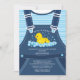 Ducky Baby Shower Invitation featuring the cutest pair of baby overalls with a mum duck & baby duck. Unique Boys baby shower invite for a duck theme baby shower for a baby boy.