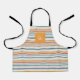 Cute Dusky Orange Blue Striped Pattern Monogram Apron