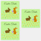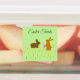 This awesome set of food labels features a pair of cute little Easter bunnies surrounded by yellow daffodil flowers. The rabbits are brown with big ears, black eyes and fluffy white tails. One of the bunnies is holding an Easter egg with a pretty purple bow on it and is reaching out to offer it to the other bunny. The daffodils are yellow with a bright orange centre.