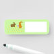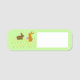 This awesome set of name tags can be customised or left blank so you can erase and rewrite them. The design features a pair of cute little Easter bunnies surrounded by yellow daffodil flowers. The rabbits are brown with big ears, black eyes and fluffy white tails. One of the bunnies is holding an Easter egg with a pretty purple bow on it and is reaching out to offer it to the other bunny. The daffodils are yellow with a bright orange centre.
