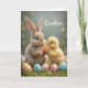 An adorable Easter card featuring a fluffy bunny and a sweet baby chick surrounded by pastel-coloured eggs.