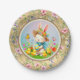 Cute Easter Bunny and Happy Spring Flowers Holiday Paper Plate