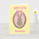 A cute Easter bunny card for her, which features a leopard print bunny inside a gold frame with Spring colors. You will be able to personalize the front with her name and the inside card message. This would make a sweet Easter card keepsake for girls.