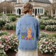 This adorable Easter jacket captures the essence of the holiday with a charming illustration by Fantabuloustef. A mischievous Easter bunny hops through a field of colourful spring flowers beneath a bright blue sky.