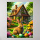 Cute easter bunny painting poster wall art. Happy Easter with this cute animals like easter bunny or baby chick. Join the easter egg hunt in spring with vibrant colours and joy, candy and a floral vintage fantasy.