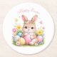 Cute Easter Bunny Rabbit Pink Blush Peony Round Paper Coaster