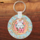 Cute Easter Bunny Sitting in The Basket Key Ring