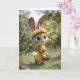 Cute Easter Bunny w/ Flower Crown & Basket of Eggs Card
