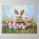 A delightful Easter bunny surrounded by brightly coloured eggs, exuding charm and festive joy in a sweet, playful scene.