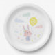 Cute Easter Bunny with flowers, clouds and balloon Paper Plate