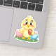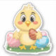 Hop into the spirit of Easter with our adorable Easter chicken sticker featuring a cheerful chick surrounded by colourful Easter eggs, perfect for adding a touch of holiday joy to any surface.