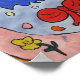 This cute yellow Easter chick has come to wish you a 'Happy Easter' and give you a sweet bunny balloon. This charming original watercolor is painted in vivid shades of yellow, blue, red, green and pink and the little chick sits in half a cracked egg patterned with multi-coloured polka dots and a red ribbon bow. The chick is surrounded by pretty spring flowers such as scarlet red tulips, blue cornflowers and yellow buttercups.