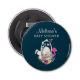 A bottle opener with a cute watercolor painting of a pale green egg sitting inside a wicker basket. Decorated with ribbons, bows, flowers and little hearts. A pink flamingo and white bunny rabbit by its side.