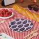 Cute cartoon style eggplant. Custom decorative paper plates. Party decor idea.