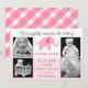 © 2012 Socialite Designs. Whimsical baby girl birth announcement with a pink gingham elephant design. A wonderful way to announce the birth of a newborn baby girl to your family and friends. Also makes a wonderful keepsake. Just change out the template photos and text with your own.