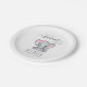 Cute paper plates for your baby girl shower with "A Sweet Little Peanut Is On Her Way" in soft grey typography and a stylish script with swashes, and a pink watercolor of a baby elephant. Personalise the mother-to-be's name and shower date in simple grey typography.