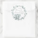 Cute gender-neutral sticker for your baby shower invitations, thank you cards and party favours featuring "A Sweet Little Peanut Is On Its Way" in a mix of simple typography and a stylish script with a heart swash and a watercolor of a mint green baby elephant on a wreath of sage green eucalyptus greenery. Personalise with the mother-to-be's name and the shower date.