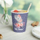 Elephant Baby Shower paper cups from Ricaso ... with purple and white spotty pattern back detail .. a pretty animal, flower and polka dot feminine design for the mum to be - available in different colour options