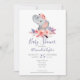 Elephant Baby Shower Personalised Invitation from Ricaso ... with blue and white spotty pattern back detail .. a pretty animal, flower and polka dot feminine design for the mum to be - easy to personalise - available in different colour options