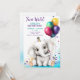 Cute Elephant in Party Hat with Balloons, Horn and Confetti Celebrates a Birthday.