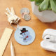 Keychain with design with design with an illustration of a blue elephant with a top hat and a brown mouse; illustrated by Radka Kavalcova / MaxiHarmony