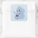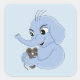 Sticker with design with design with an illustration of a blue elephant with a brown mouse; illustrated by Radka Kavalcova / MaxiHarmony