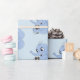 Wrapping Paper with design with design with an illustration of a blue elephant with a top hat and a brown mouse; illustrated by Radka Kavalcova / MaxiHarmony