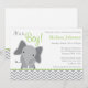 A modern grey and green elephant themed baby shower invitation. Perfect for a little boy baby shower.