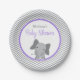 Modern grey and purple elephant themed baby shower paper plates. Perfect for a little girl baby shower. Easily personalise!