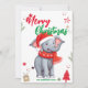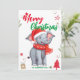 Cute Elephant Christmas tree Holiday Family name Card