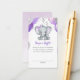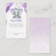 This adorable baby shower diaper raffle card features purple and grey baby girl elephant with balloons and confetti. Back features soft purple watercolor background. Easily customised for your event by clicking personalise.