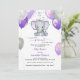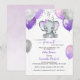 This adorable baby shower invitation features purple and grey baby girl elephant with balloons and confetti. Back features soft purple watercolor background. Easily customised for your event by clicking personalise.