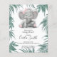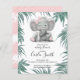 A cute baby shower invitation with my hand drawn leaves and elephant girl.
